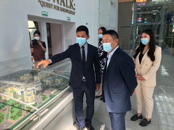 纳扎尔巴耶夫大学创立于2010年,由哈萨克斯坦共和国首任总统纳扎尔巴耶夫担任首位校长。学校目前共有学生6000余名,分别在工程、人文社科、科学技术等学院就读。阿斯塔纳分行总经理王松华一行人,在学校工作人员的指引下,参观了学校的主教学楼、报告厅,并习主席在2013年9月7日提出“丝绸之路经济带”倡议的“议会厅礼堂”中长久驻足。共建“一带一路”倡议提出以来,世界在百年未有之大变局中寻找发展机遇、凝聚合作共识。在习近平总书记的亲自谋划、亲自部署、亲自推动下,共建“一带一路”从夯基垒台、立柱架梁到落地生根、持久发展,从绘就一幅“大写意”到绘制精谨细腻的“工笔画”,走出一条高质量建设的光明大道。